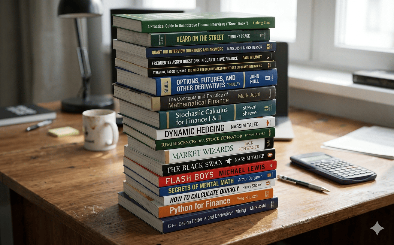 This guide covers the most useful books at every stage of preparation, from interview essentials to quantitative theory, trading classics, and programming. It also includes a quick-reference comparison table, firm-specific guidance, and a FAQ section answering the most common questions candidates have about where to start.
